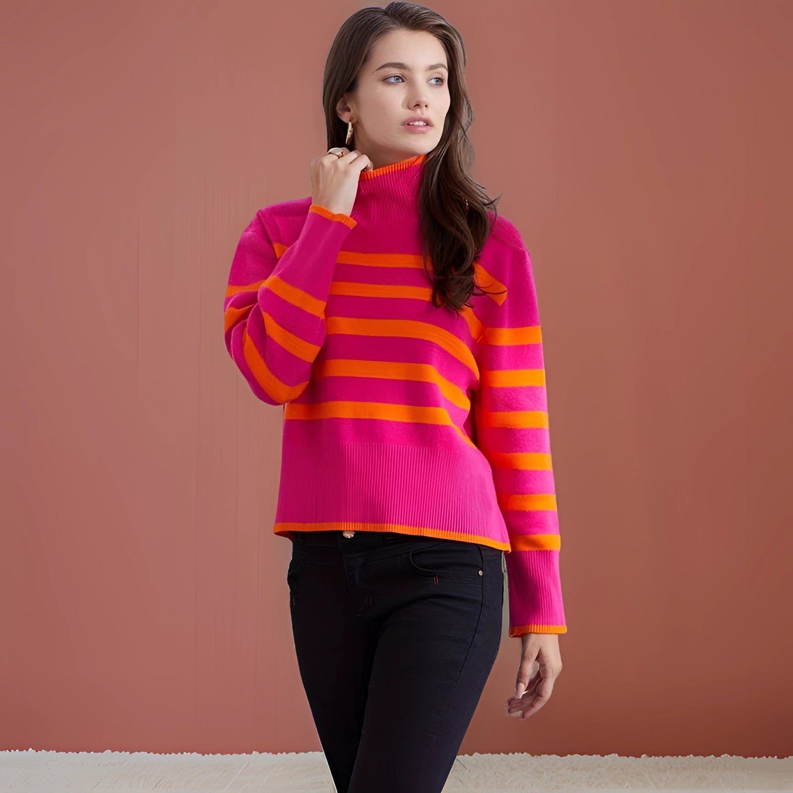 ColorRoll™ | Pink & Orange Turtleneck Sweater | Women's winter fashion