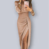 - Unforgettable design: The high leg slits and the off-the-shoulder neckline attract admiring glances.
