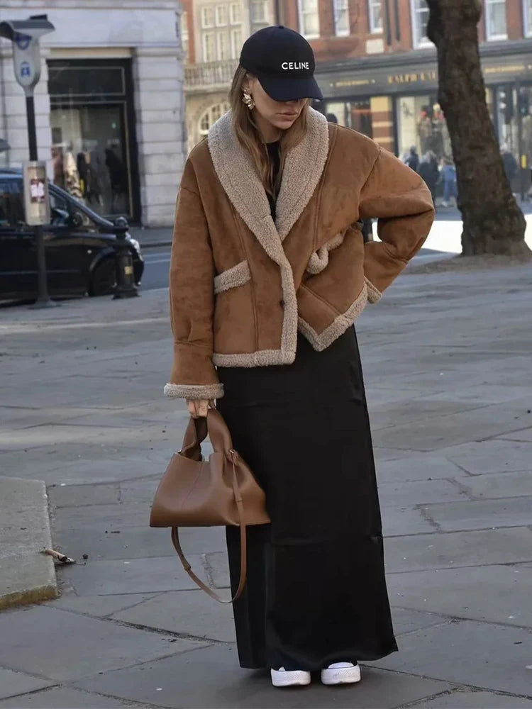Giovanna™ | Women's faux lambskin winter jacket, fashionable and warm with turn-down collar