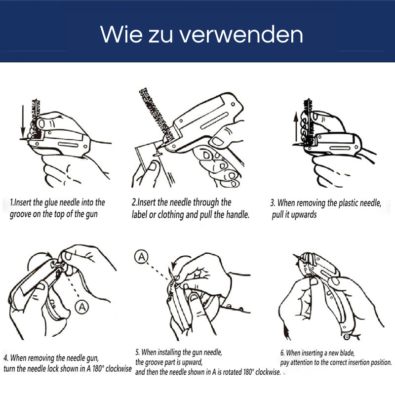 With the Kleiderheld , you simply insert fasteners, push the needle through the fabric, and press the trigger. In seconds, your garments are secured and ready to wear.