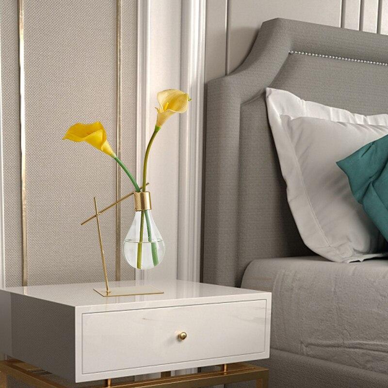 Erhellen Sie Ihren Raum mit dieser schlanken hydroponischen Glasvase, die entwickelt wurde, um Stecklinge zu pflegen, während sie frische Wurzeln in klarem Wasser entwickeln. Die Kombination aus transparentem Glas und Metall schafft ein modernes, luftiges Aussehen, das jeden Schreibtisch, jedes Regal oder Fensterbrett aufwertet.