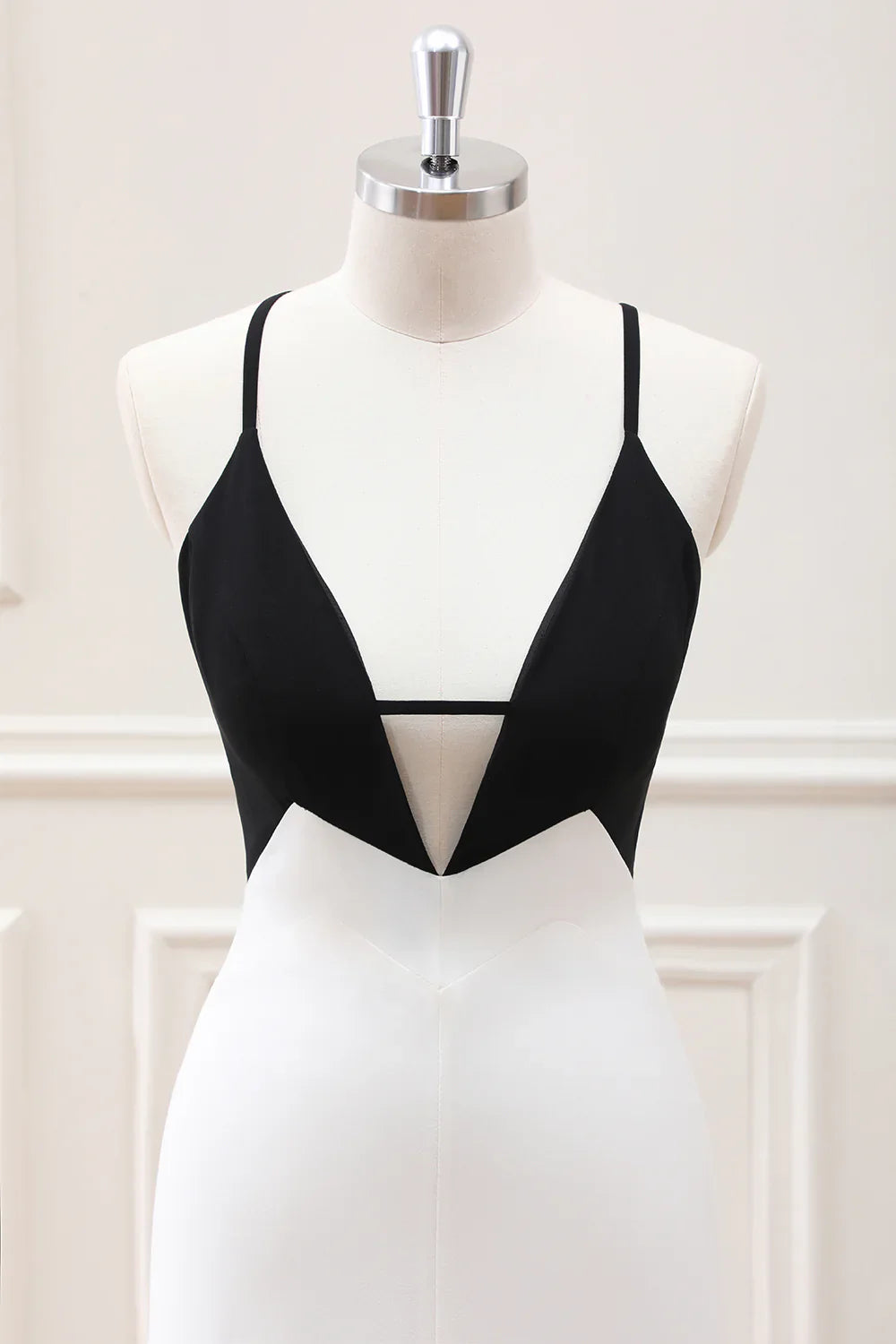 Black White Sheath Spaghetti Straps Maxi Dress with Slit