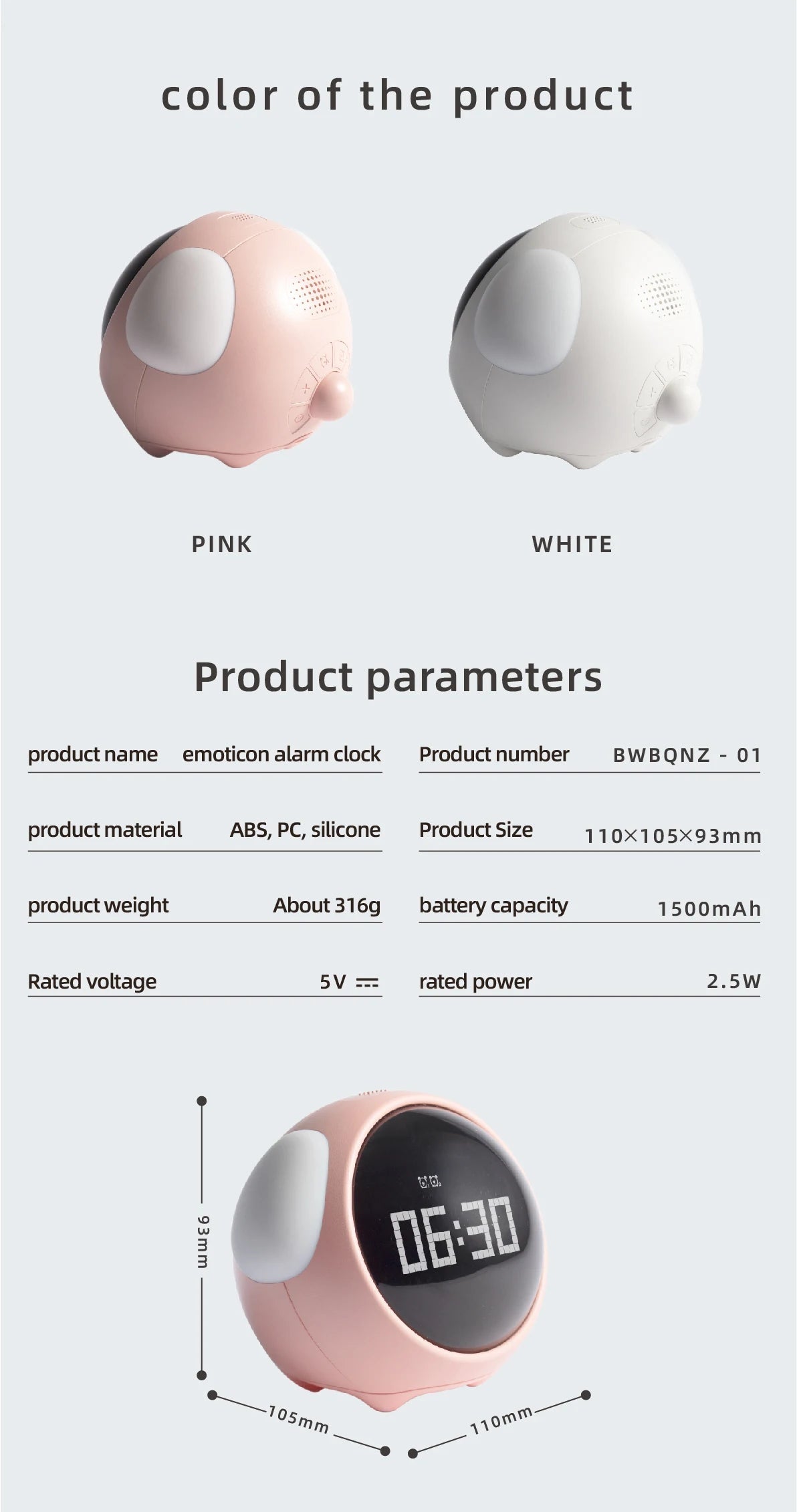 Mit einem niedlichen, cartooninspirierten Design bringt dieser digitale Wecker ein sanftes Leuchten durch sein gebogenes LED-Display und einen weichen Nachtmodus für gemütliche Schlafenszeiten und ein einfaches Aufwachen am Morgen. Sein einfaches Design umfasst eine Schlummertaste, eine Temperaturanzeige in Celsius oder Fahrenheit sowie leicht zu bedienende Steuerungen mit nur drei Tasten. Mit Stromversorgung über USB oder AAA-Batterien passt er perfekt auf Nachttische oder Schreibtische – und verleiht dem Kinderzimmer eine verspielte Note.