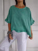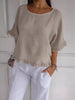 Nuvéa™ | Round neck, gathered hem, medium sleeves, cotton and linen