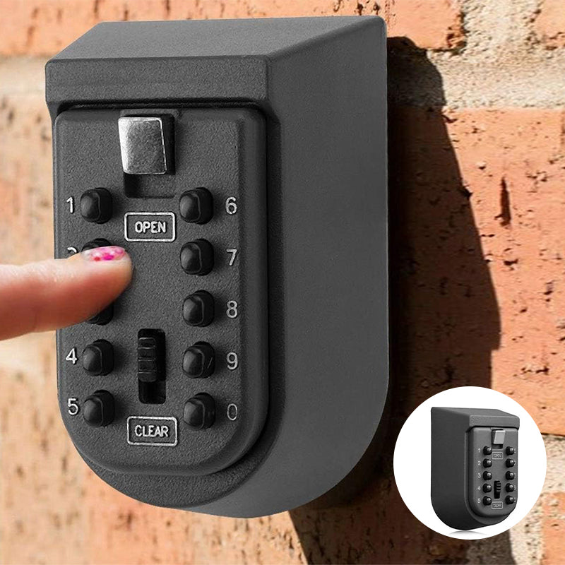 Wall mounting including mounting material, 10-digit mechanical safe, weatherproof with removable rubber cover, key safe set with selected code