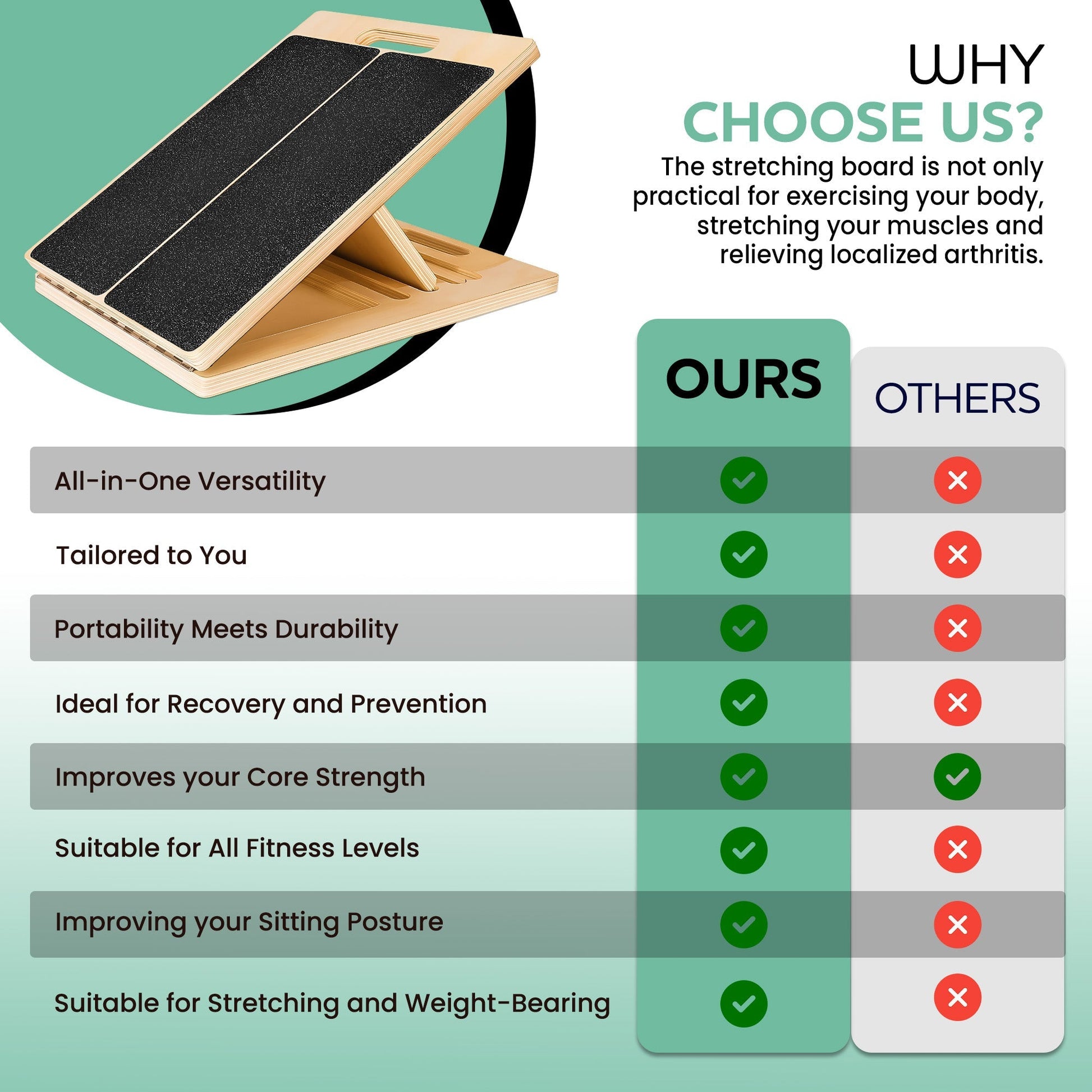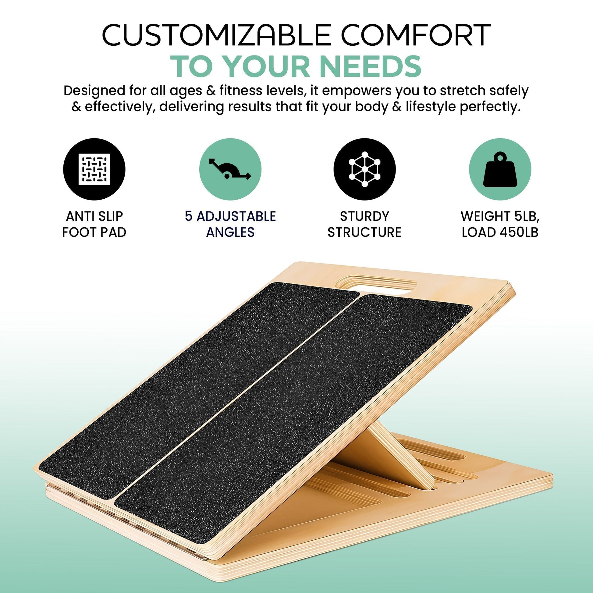 Fügen Sie Ihrer täglichen Routine sanfte Dehnübungen hinzu mit diesem anpassbaren Schrägbrett. Es wurde entwickelt, um die Genesung zu unterstützen und häufige Fuß- und Beinverspannungen wie Plantarfasziitis und Schienbeinschmerzen zu lindern, fördert die Flexibilität und hilft Ihnen, bequem zu Hause oder unterwegs aktiv zu bleiben.