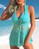 Flattering design: The ruched design along the front of the tankini top creates a slimming effect that accentuates your curves and flatters your figure. The printed lace on the top also makes this set unique.