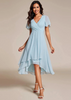 This elegant dress adds a touch of sophistication to any look. Featuring a flattering V-neck and delicate, short ruffle sleeves, it emphasizes your feminine charm. The wrap top accentuates the waist, while the flowing high-low hem adds lightness and elegance to every movement—perfect for weddings, parties, or special occasions.