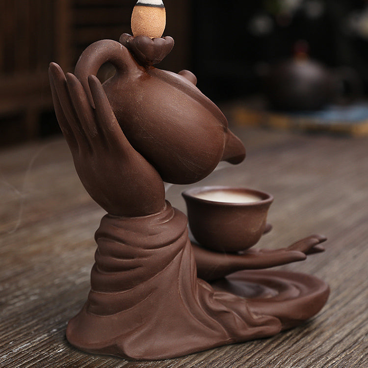 Bringen Sie Ruhe in Ihr Zuhause mit diesem eleganten Keramik-Räuchergefäß. Geformt wie eine Buddha-Hand, die eine Teekanne hält, gibt es sanften, fließenden Rauch ab, der einem friedlichen Wasserfall ähnelt – ideal zur Unterstützung von Meditation, Yoga-Sitzungen oder stillen Momenten in jeder gemütlichen Ecke. Das leichte Design macht es zu einer anmutigen Ergänzung für Ihr Wohnzimmer, Schlafzimmer oder Ihre Reisezubehör.
